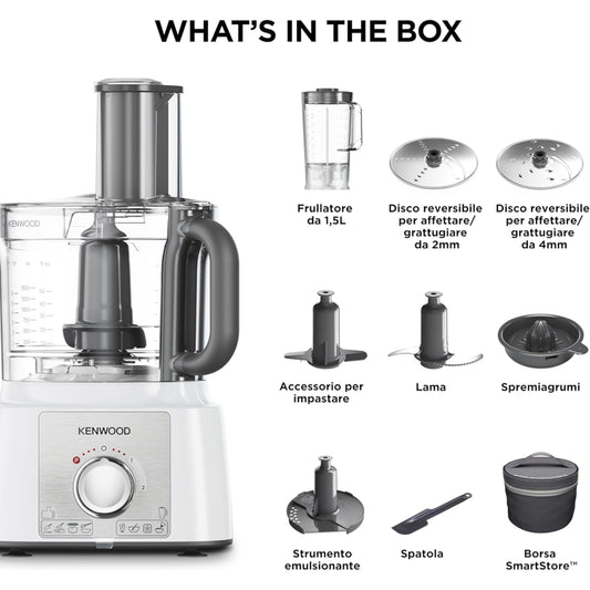 Kenwood Food Processor 1000W Multi-Functional with 3 Stainless Steel Disks, Blender, Grinder Mill, Juicer Extractor, Whisk, Dough Maker, Citrus Juicer