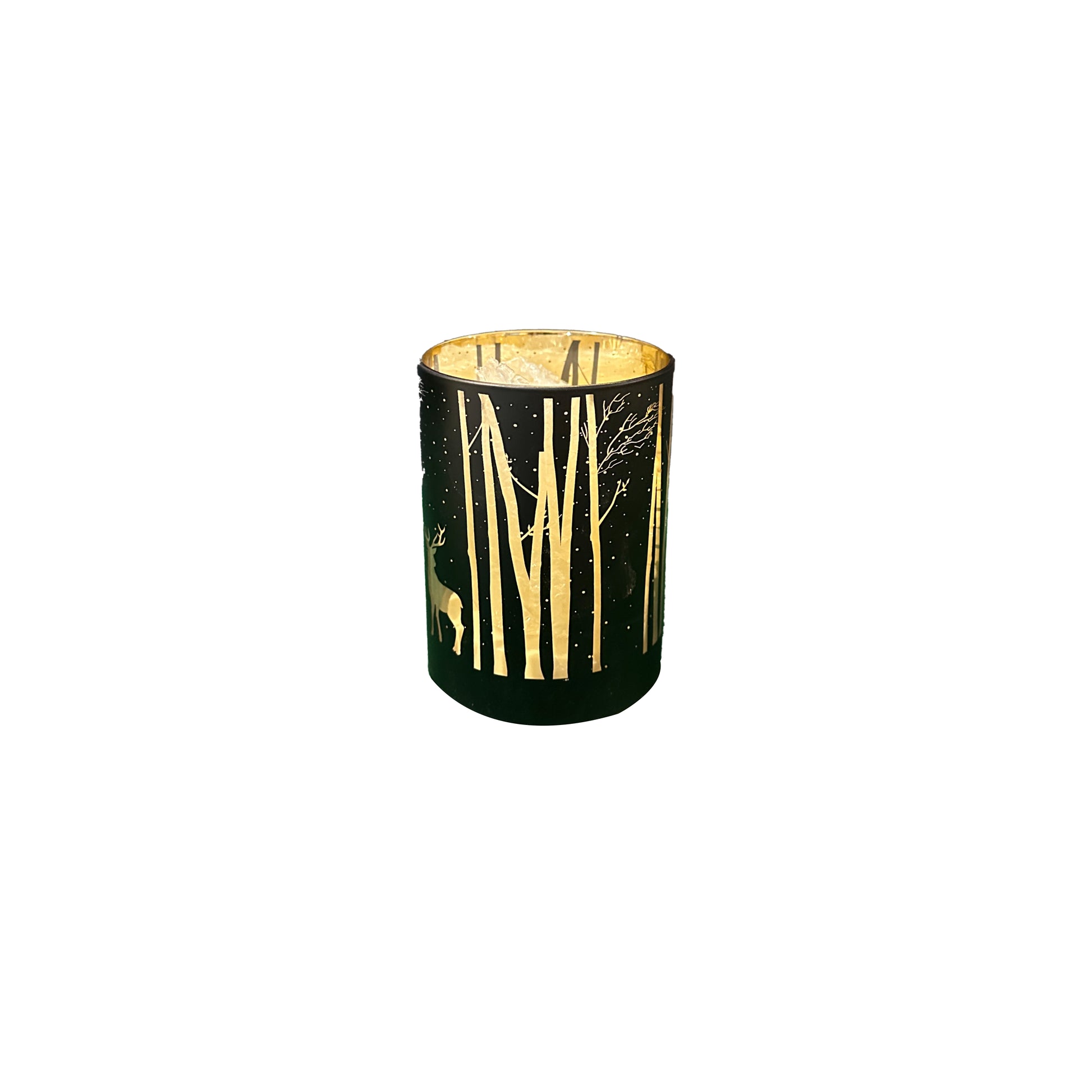 Description: Glass With Deer Design Black And gold Christmas decoration